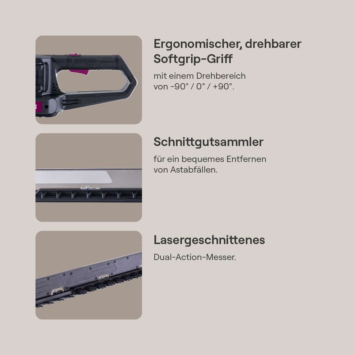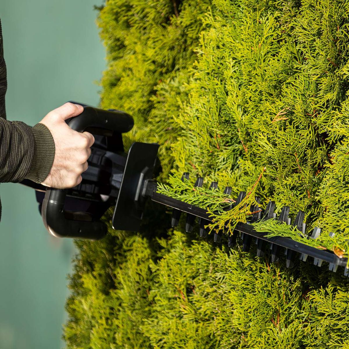 - Leistungsstarke Akku-Heckenschere zum einfachen Stutzen von Hecken und Sträuchern
