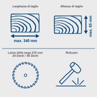- Inklusive 24 Z und 48 Z HW-Sägeblatt
