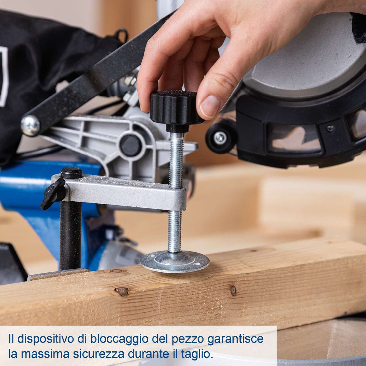 Die HM216 Kapp-, Zug- und Gehrungssäge von Scheppach ist aufgrund der kompakten Maße, das ideale Modell für den Einsatz in der Hobby-Werkstatt, die mit wenig Raum auskommen muss. Das kombinierte Aluminium-Druckguss-Gestell macht die Säge nicht nur leicht und transportabel, sondern auch stabil. Sie lässt sich problemlos verstauen und bei Bedarf auf die Werkbank stellen.