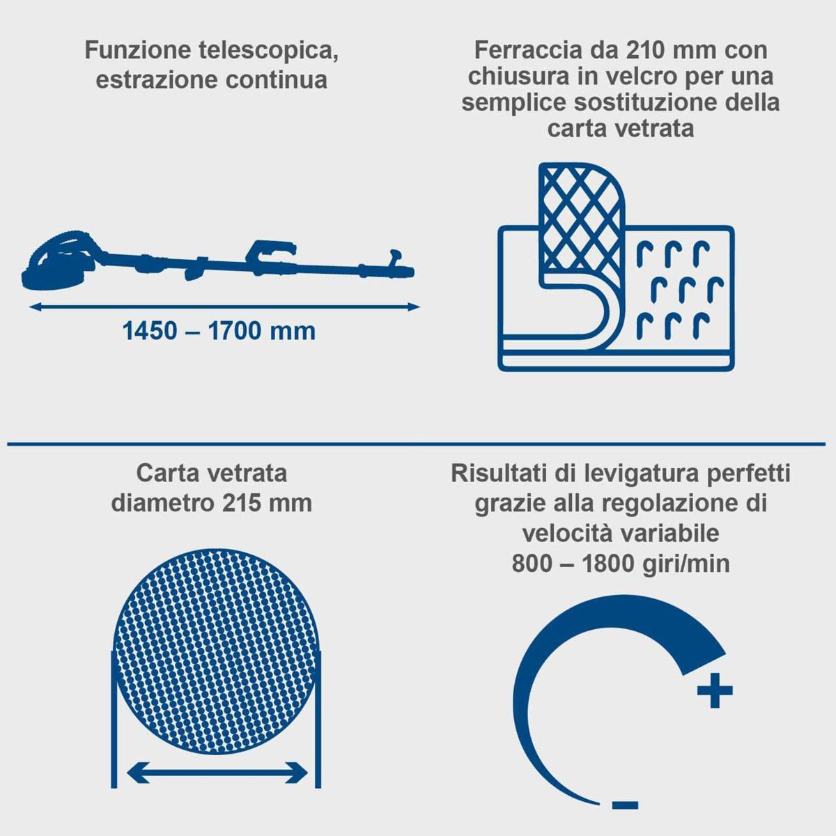 - Große Flächenabdeckung in einem Arbeitsgang dank 210 mm Schleifteller