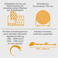 Wand- und Deckenschleifer DWS10 Woodster- 710W | Variable Drehzahl | inkl. Rund & Eck-Schleifkopf